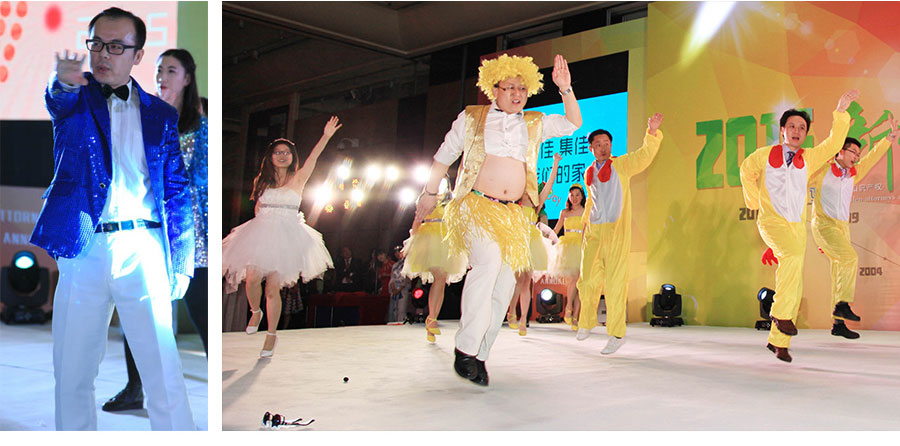 在經(jīng)久不息的掌聲中,集佳20年年會會議部分圓滿結(jié)束,一曲熱情洋溢的《奔跑》活力開場,十幾位青年才俊“歌神”跳上舞臺,熟悉的旋律,高亢的領(lǐng)唱,歌聲很快感染了全場。《集佳,對你愛不完》、《小雞舞》、《小蘋果》、《動感現(xiàn)代舞》紛紛精彩上演,《歌舞串燒》更有國外客戶友情出演,還有穿越大戲《步步蛇精》,匪夷所思的故事情節(jié)吸引了眾人的眼球,《跆拳道舞》由已獲跆拳道黑帶的流程部同事領(lǐng)舞。集佳合伙人也全力打造三句半《四大才子夸集佳》,作為獻(xiàn)給集佳所有員工的一份禮物。