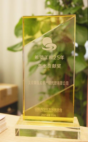 中國青少年發展基金會在北京舉行“希望工程25年暨公益新項目發布”活動,并向179家長期捐贈企業、合作單位和23名捐贈個人代表頒獎,集佳被授予“希望工程25年杰出貢獻獎”。