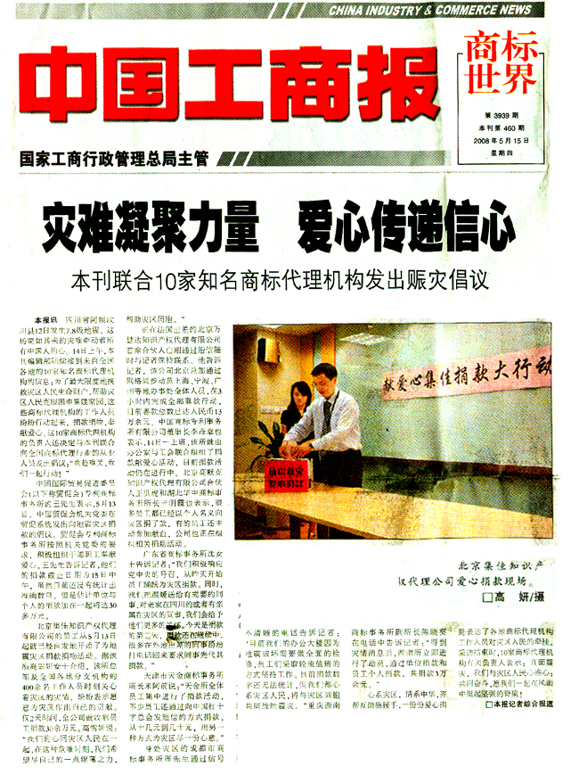 《中國工商報》:災難凝聚力量 愛心傳遞信心