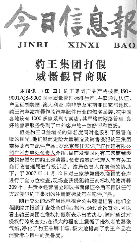 《今日信息報》:豹王集團打假 威懾假冒商販