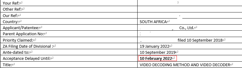以下通過南非專利申請的案例來進一步解釋上述期限要求。