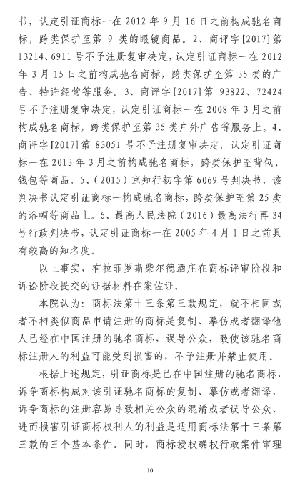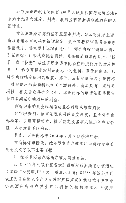 自2016年以來,商評(píng)委、北京知識(shí)產(chǎn)權(quán)法院已經(jīng)先后在十幾個(gè)裁定或行政判決中認(rèn)定“LAFITE”為馳名商標(biāo),但大多還在行政訴訟程序之中。本案是首個(gè)終審判決,對(duì)“LAFITE”在中國的馳名商標(biāo)保護(hù)之路,具有里程碑式的重要意義。