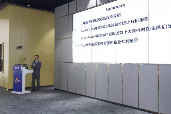集佳律所合伙人、專利代理師、最高人民法院知識產權案例指導(北京)基地專家咨詢委員會專家武樹辰老師向與會企業作“專利無效宣告程序對藥企的重要性——2008-2018年度專利無效案件統計分析”主題培訓。培訓圍繞中國專利無效宣告程序、2008-2018年度專利無效案件分析解讀以及2014-2018年度專利復審無效十大案件對藥企的啟示展開。武樹辰老師擁有豐富的專利審查、訴訟及涉外培訓經驗,曾成功處理過許多重大的專利侵權與無效案件。他結合多年的實踐經驗及深厚的理論功底,條理清晰、深入淺出地對相關專業知識進行了詳盡解讀,并重點對近十年國家專利無效宣告制度的發展及實踐作了深入剖析,為廣大醫藥企業代表提供了豐富的實操經驗和工作指導。
