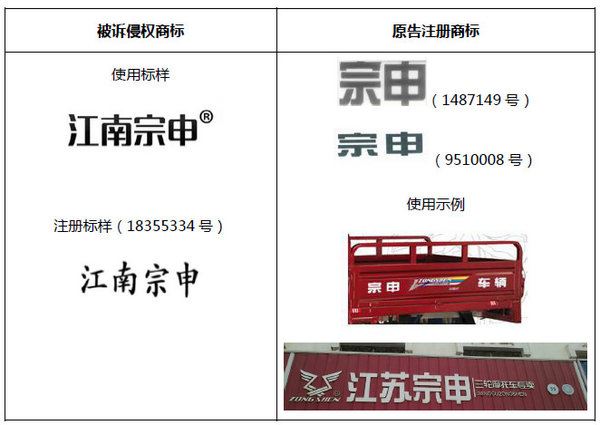 宗申產業集團有限公司是一家總資產及年銷售額均突破200億元的多元化企業集團,核心業務包括以動力、機車、大型農機、通用航空、無人機、新能源、智能裝備為主的實體產業群。江蘇宗申是宗申產業集團旗下宗申微型汽車、特種車輛經營及出口指定企業,專業致力于微型汽車系列產品、電動車、三輪摩托車的發展。“宗申”品牌具有較高的知名度和品牌價值,近幾年來不少侵權者在電動三輪車行業進行仿傍,通過申請注冊摹仿“宗申”的商標來試圖將其侵權行為合法化。并且,為規避侵權責任,侵權商標多由自然人注冊后授權侵權生產廠家及經銷商使用。