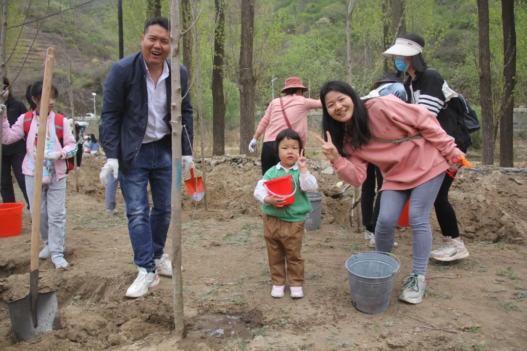 植樹現場,呈現一片熱火朝天的勞動景象。大伙兒個個熱情高漲,盡情投入,拿起鐵鍬、水桶等工具,植苗覆土、拍打夯實、提水澆灌;小朋友們也干勁十足,用稚嫩的小手扶正樹苗,拎著小桶小心翼翼給小樹澆水,盡管鞋子上沾滿泥土,額頭上滲出汗珠,但臉上都綻放著驕傲開心的笑容……