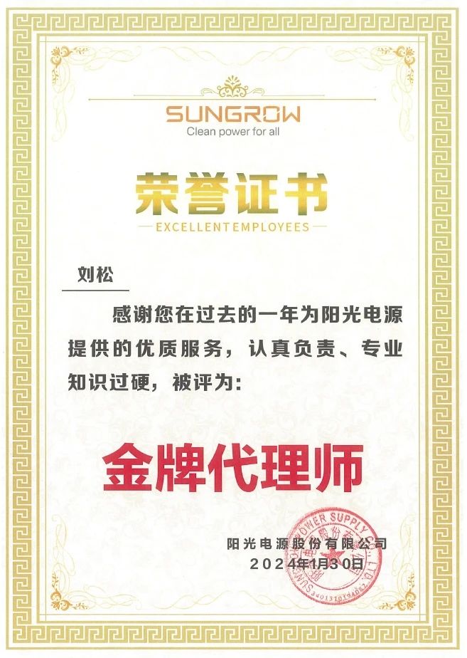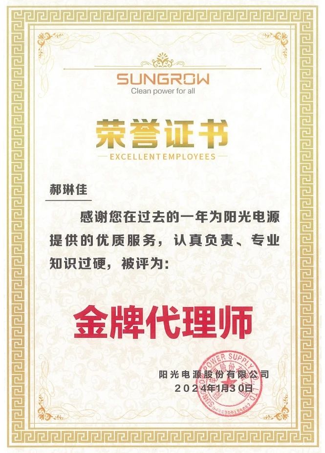 新春伊始,集佳再獲喜訊——陽光電源股份有限公司授予集佳“優秀合作伙伴”榮譽稱號。