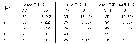 【3】基于國(guó)家知識(shí)產(chǎn)權(quán)局商標(biāo)局《2024年三季度各省、自治區(qū)、直轄市商標(biāo)注冊(cè)申請(qǐng)量、注冊(cè)量按類別統(tǒng)計(jì)表》