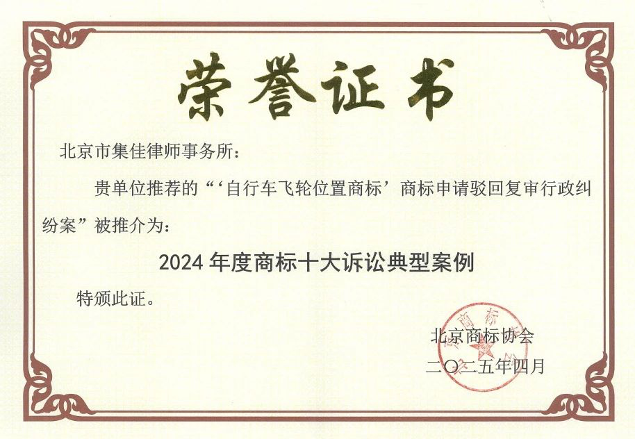 集佳代理“自行車飛輪位置商標(biāo)”行政糾紛案入選北京商標(biāo)協(xié)會年度十大訴訟典型案例